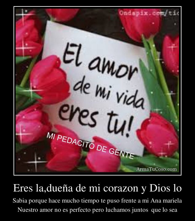 Eres la,dueña de mi corazon y Dios lo